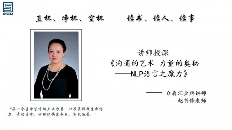 《溝通的藝術(shù) 力量的奧秘——NLP語言之魔力(一)》——眾犇匯金牌講師 趙書鋒老師