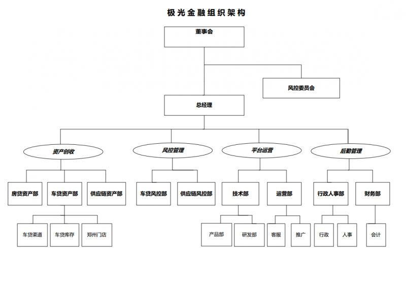 公司設(shè)董事會(huì)、總經(jīng)理辦公室,下設(shè)資產(chǎn)創(chuàng)收中心、風(fēng)控管理中心、平臺(tái)運(yùn)營(yíng)中心和后勤管理中心等四大中心,下轄財(cái)務(wù)部、行政人事部、技術(shù)部、運(yùn)營(yíng)部等9大部門(mén),擁有員工百余人。公司高管全部來(lái)自國(guó)內(nèi)知名企業(yè)集團(tuán),在互聯(lián)網(wǎng)及金融投資領(lǐng)域擁有非常豐富的從業(yè)及管理經(jīng)驗(yàn)。