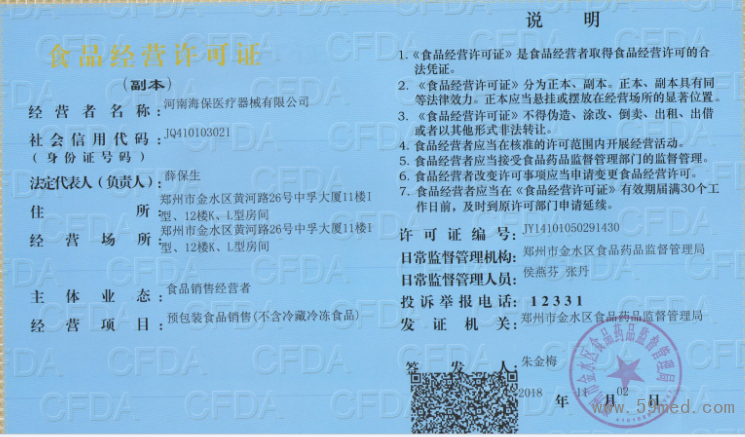 | 發(fā)證機(jī)構(gòu): | ??鄭州市金水區(qū)食品藥品監(jiān)督管理局 | 發(fā)證時(shí)間 : | ??2018-11-02 |