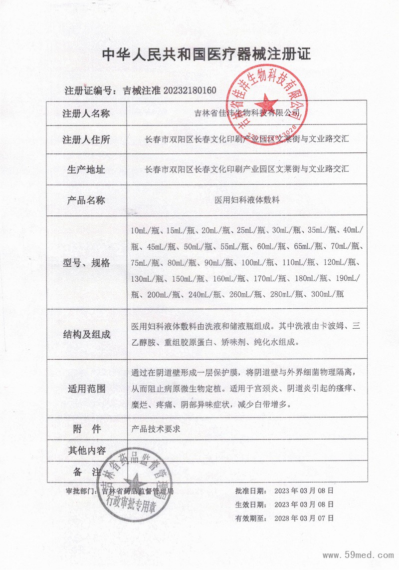 | 發(fā)證機(jī)構(gòu): | ??吉林省藥品監(jiān)督管理局 | 發(fā)證時(shí)間 : | ??2023-03-08 |