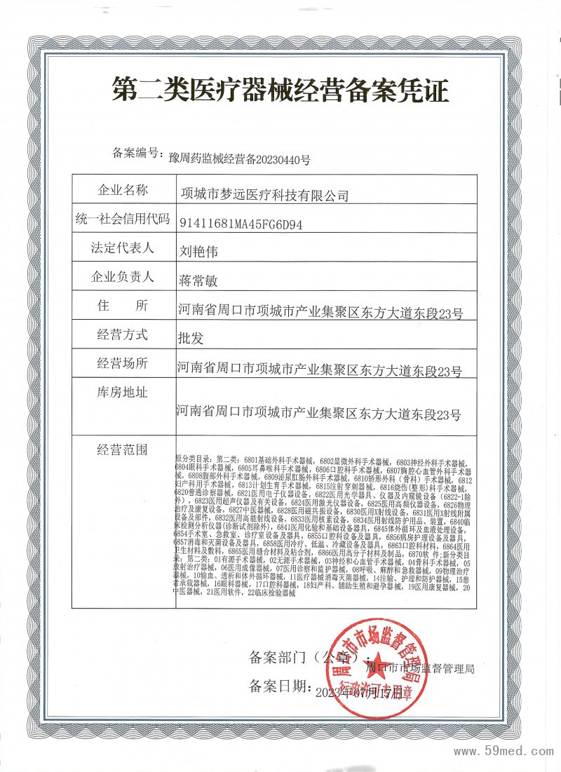 首頁 > 榮譽(yù)資質(zhì) > 第二類醫(yī)療器械經(jīng)營備案憑證