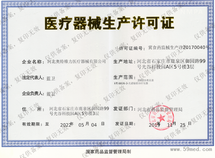首頁(yè) > 榮譽(yù)資質(zhì) > 醫(yī)療器械生產(chǎn)許可證