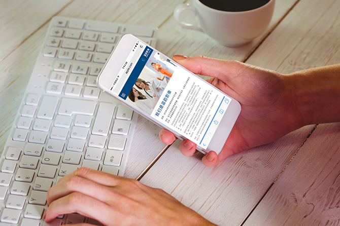 延續(xù)PC端官網(wǎng)大氣簡潔的設(shè)計風(fēng)格,移動端官網(wǎng)以藍影影像藍,搭配恰如其分的灰色為主色調(diào),詮釋醫(yī)療行業(yè)的專業(yè)度和科技感,頁面大方現(xiàn)代、簡約規(guī)整。整體設(shè)計風(fēng)格統(tǒng)一,讓品牌以一致的面貌廣泛傳播。