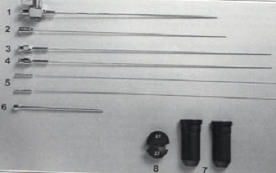 立體定向手術(shù)器由各種尺寸的穿刺套針、側(cè)孔和螺旋活檢針、鉆頭和鉆頭套、配套的塑料導(dǎo)向夾/止動夾、轉(zhuǎn)接器和電鉆等部分組成。與弓形導(dǎo)向儀配合進行各種立體定向手術(shù)的實施。