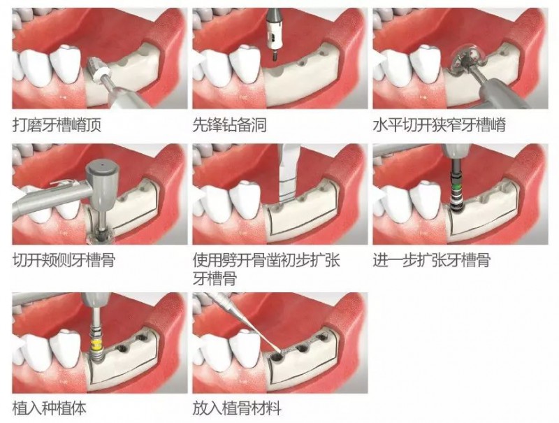 - 在擴(kuò)張骨前,通過切開1mm頰側(cè)下方的牙槽骨可防止牙槽骨斷裂
