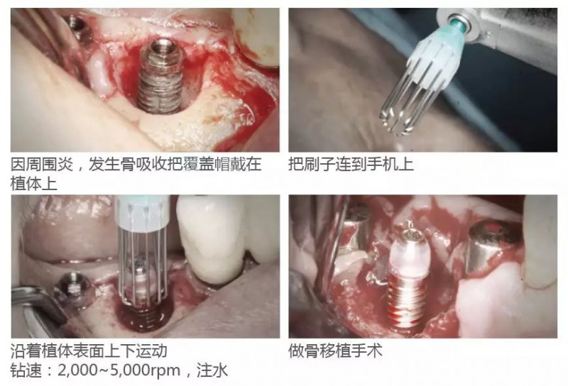 通過在種植體周圍高速旋轉(zhuǎn),清除周圍炎癥,從而有利于延長種植體使用壽命