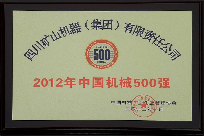 2012年,由中國機(jī)械工業(yè)企業(yè)管理協(xié)會主辦、機(jī)械工業(yè)經(jīng)濟(jì)管理研究院和世界經(jīng)理人集團(tuán)聯(lián)合承辦的“中國機(jī)械500強”榜單上,四川礦山機(jī)器(集團(tuán))有限責(zé)任公司位列第400位。川礦集團(tuán)作為省裝備制造業(yè)骨干企業(yè),將不斷夯實基礎(chǔ),提高企業(yè)自主創(chuàng)新,提升質(zhì)量管理和科技創(chuàng)新水平,為四川經(jīng)濟(jì)社會發(fā)展作出貢獻(xiàn)。
