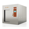 1.4臥式滅菌腔,矩形截面,歐式GETINGE環(huán)形加強(qiáng)筋夾套結(jié)構(gòu), 獨(dú)特的內(nèi)殼與環(huán)形夾套組合結(jié)構(gòu)增強(qiáng)了主體的強(qiáng)度和剛度,相比整體式夾套承載能力強(qiáng)、應(yīng)力集中低,尤其在脈動交變壓力和溫度載荷下承載能力更強(qiáng),容器疲勞壽命更長。(提供主體結(jié)構(gòu)原理圖)密封槽結(jié)構(gòu):密封槽直接焊接在兩端環(huán)形夾套上,避免了整體法蘭結(jié)構(gòu)因無靠近兩端面的夾套,影響內(nèi)膽預(yù)熱溫度從而干燥效果。